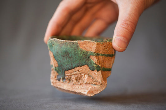 Chawan are molded using the "tezukune" technique (hand-forming), with the palms of the hand: clay is shaped into a dense, flat circle and built up by compressing between the palms. When dry enough, the rough and imperfect clay is trimmed with an iron scraper - "kurinuki" technique . Then it is covered with glaze and fired at high temperature. All glazes and clay used are “food safe”