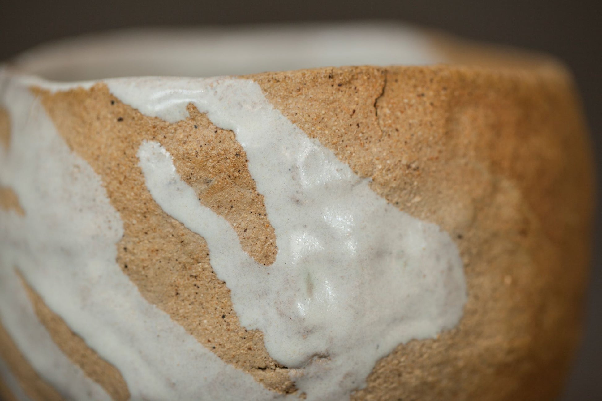Inside, the tea bowl is covered with matte white glaze. There is a shallow dent called “Chadamari”at the center of the tea bowl. Chadamari, cha damari: The tea well. Where the last of the tea will pool. The matte, dark finish accentuates the beautiful lush green of the tea. Outside, white glaze and wood ash partially covers the clay. There are protrusions on the walls of the bowl. Very comfortable to hold. Your hands will feel the warm and texture of this ceramic. It is simple, natural look gives any matcha session a pure and classy atmosphere. Clay is collected not far from my house where I live. Compounded of several clays selected for their plastic qualities, along with coarse fire-clay and added grog for texture.