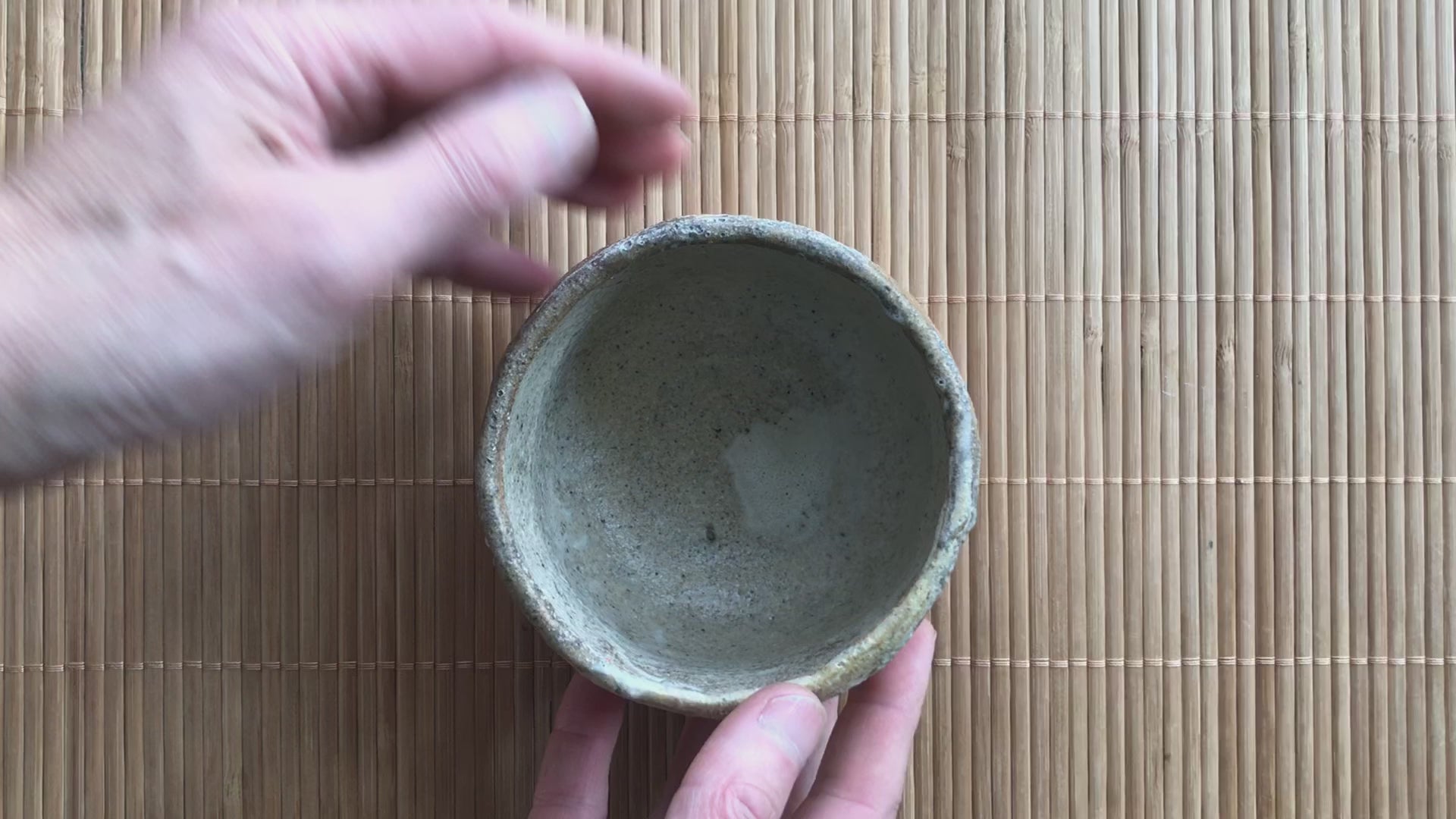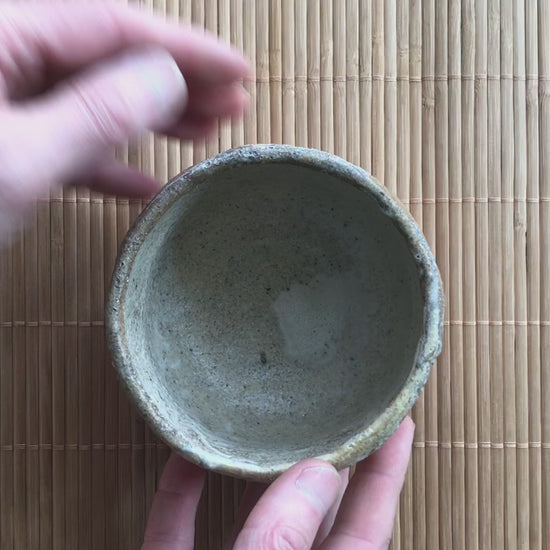 This tea bowl is unique. I made all these tea bowls in my workshop. Its shape was created only by hands (Hand formed). Only hands, clay and iron or wood scraper. You can see fingerprints on the sides of the bowl.