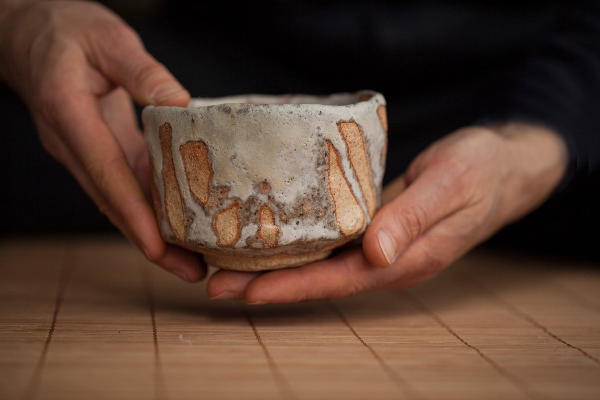 Chawan are molded using the "tezukune" technique (hand-forming), with the palms of the hand: clay is shaped into a dense, flat circle and built up by compressing between the palms. When dry enough, the rough and imperfect clay is trimmed with an iron scraper - "kurinuki" technique . Then it is covered with glaze and fired at high temperature. All glazes and clay used are “food safe”