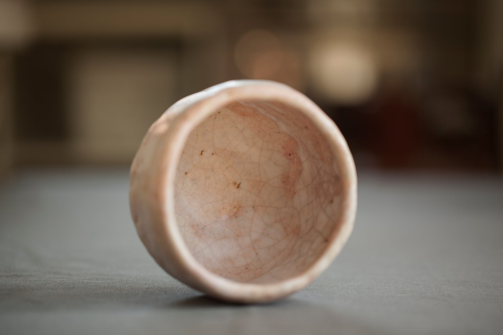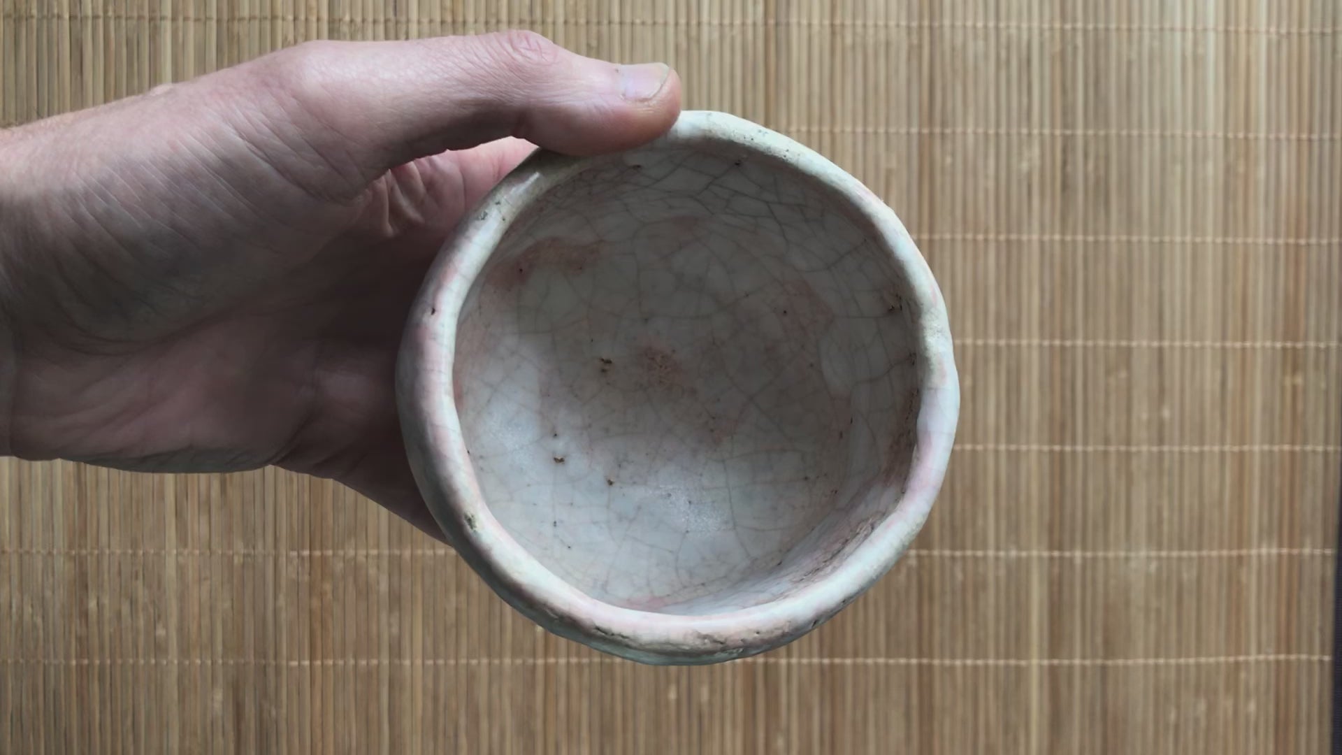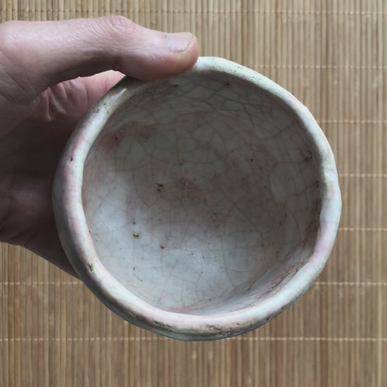 This tea bowl is unique. Its shape was created only by hands (Hand formed). Only hands, clay and iron or wood scraper.