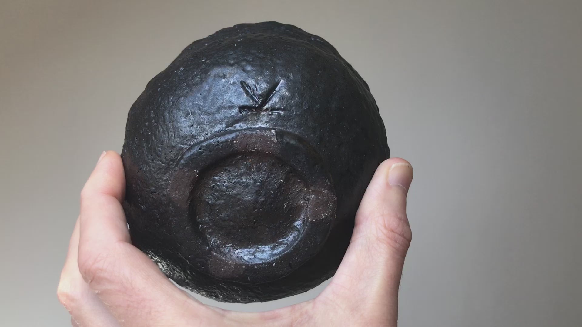 This tea bowl is unique. Its shape was created only by hands (Hand formed). Only hands, clay and iron or wood scraper. You can see fingerprints on the sides of the bowl.