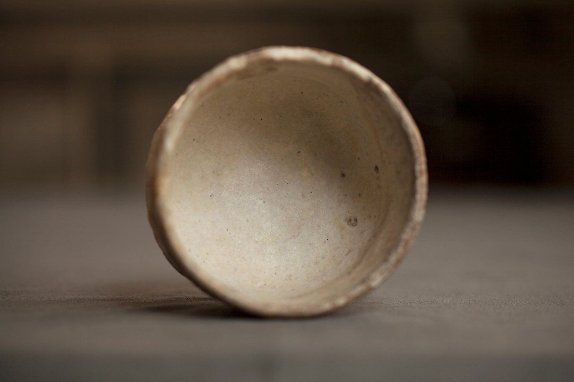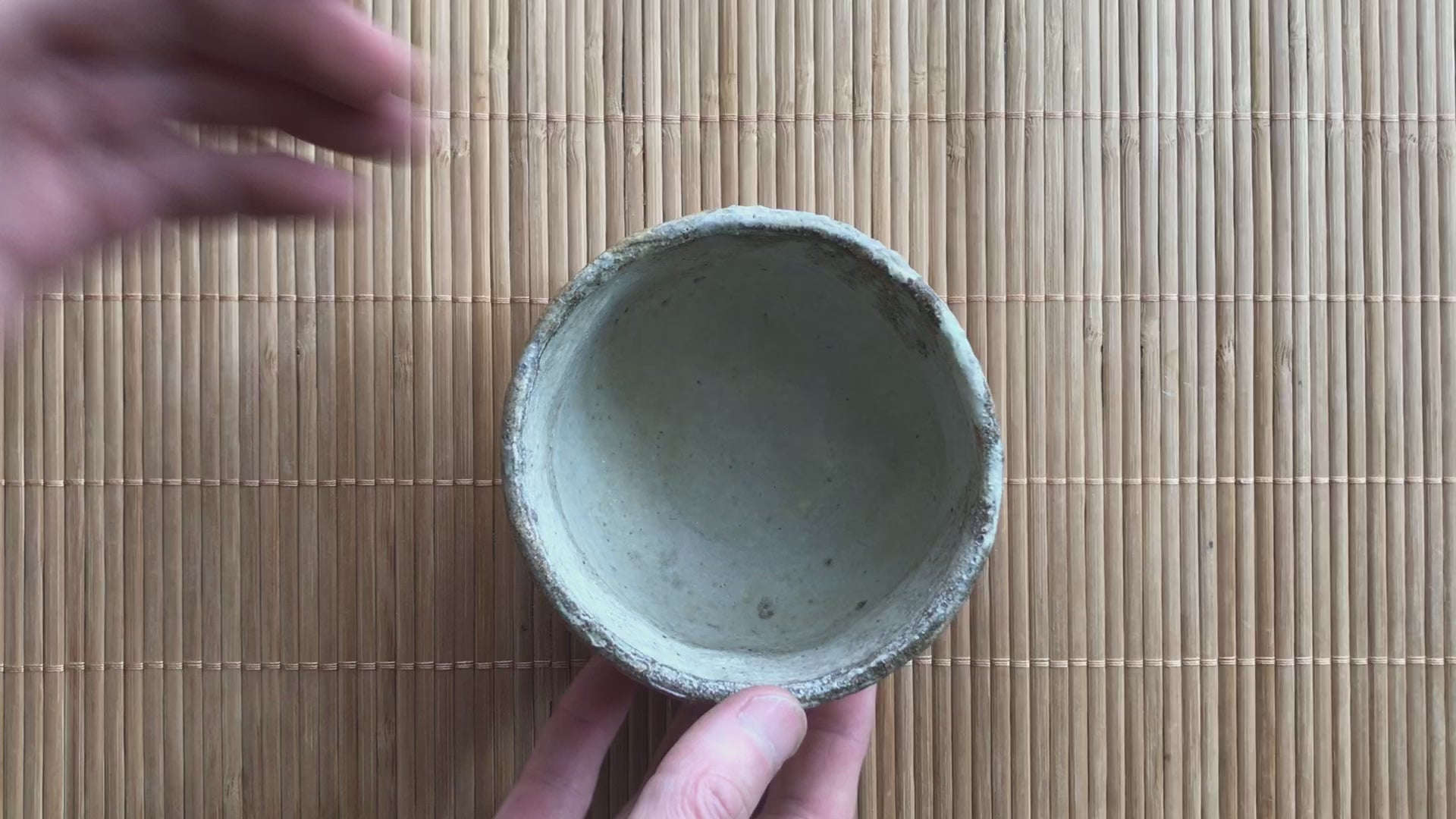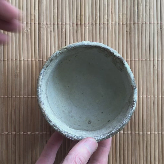 This tea bowl is unique. I made all these tea bowls in my workshop. Its shape was created only by hands (Hand formed). Only hands, clay and iron or wood scraper. You can see fingerprints on the sides of the bowl.