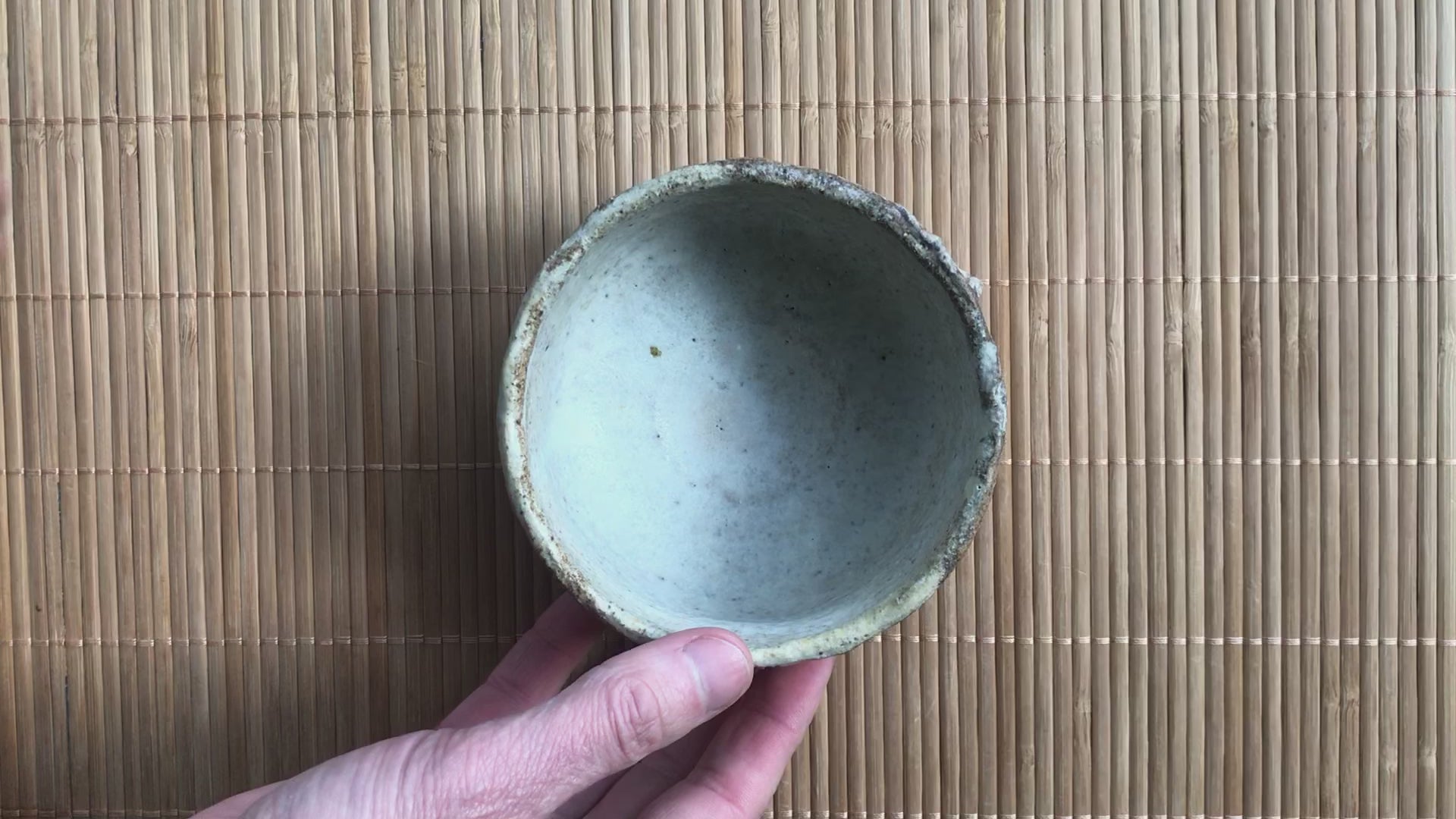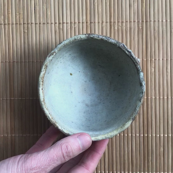 This tea bowl is unique. I made all these tea bowls in my workshop. Its shape was created only by hands (Hand formed). Only hands, clay and iron or wood scraper. You can see fingerprints on the sides of the bowl.