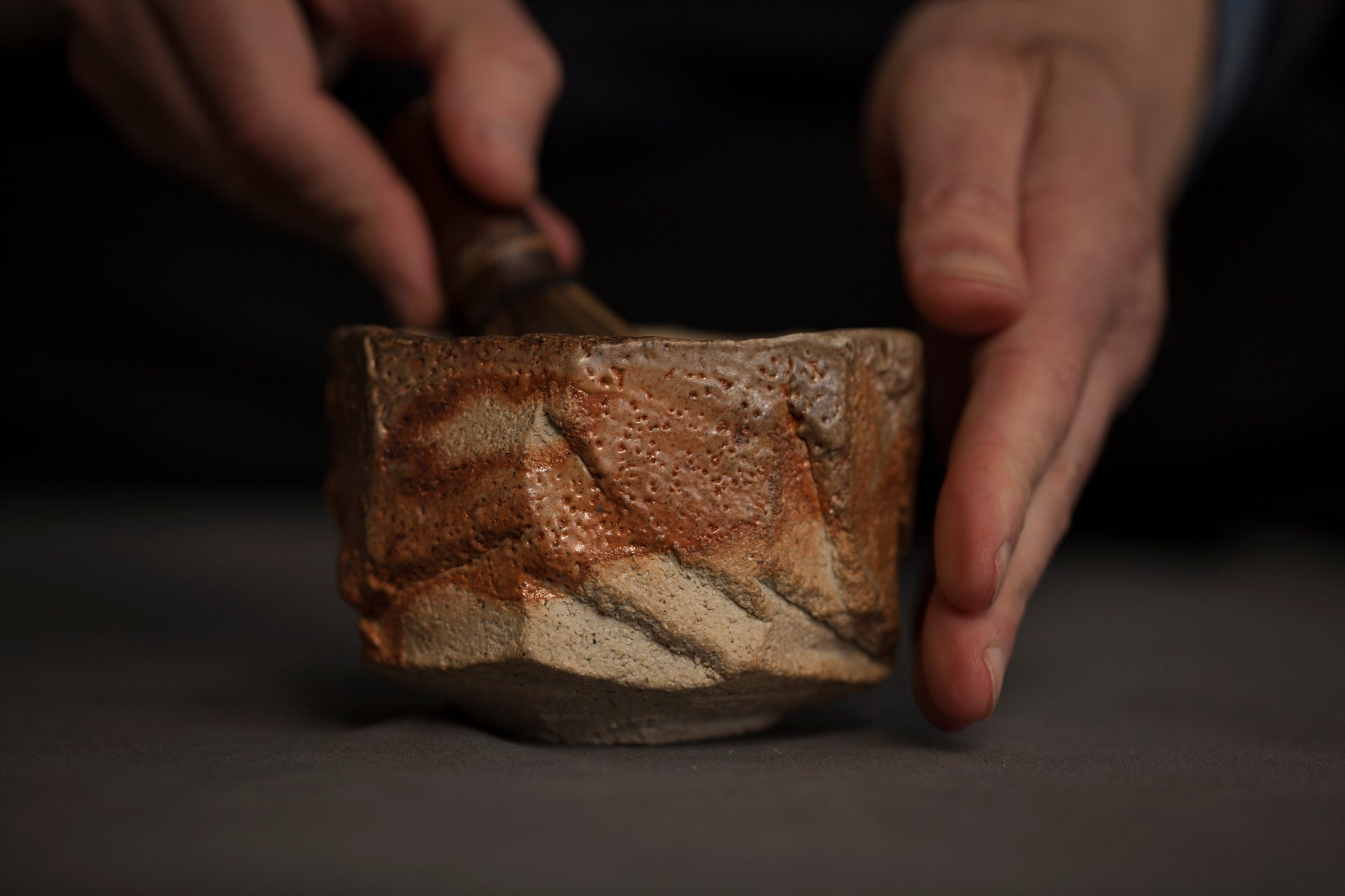 Chawan are molded using the "tezukune" technique (hand-forming), with the palms of the hand: clay is shaped into a dense, flat circle and built up by compressing between the palms. When dry enough, the rough and imperfect clay is trimmed with an iron scraper - "kurinuki" technique . Then it is covered with glaze and fired at high temperature. All glazes and clay used are “food safe”