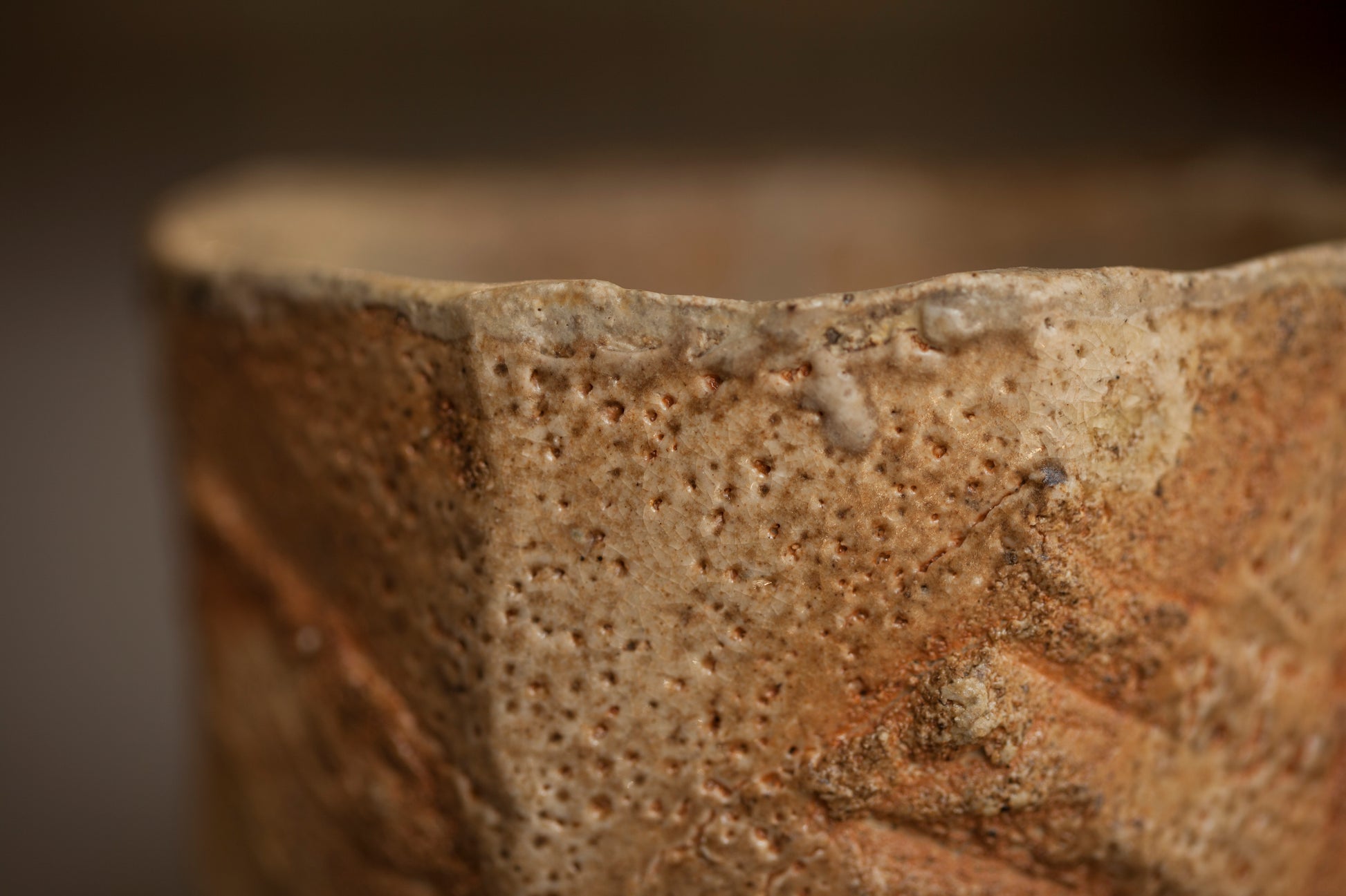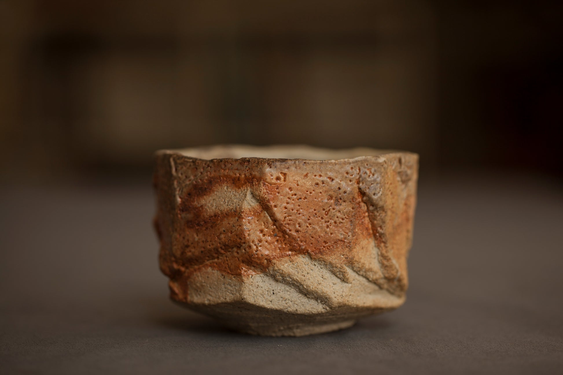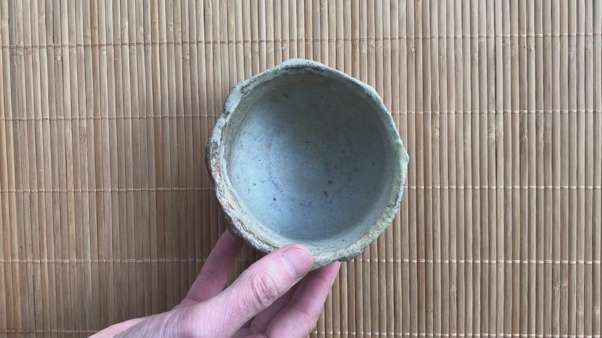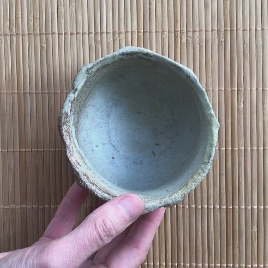 This tea bowl is unique. I made all these tea bowls in my workshop. Its shape was created only by hands (Hand formed). Only hands, clay and iron or wood scraper. You can see fingerprints on the sides of the bowl.