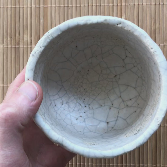 This tea bowl is unique. Its shape was created only by hands (Hand formed). Only hands, clay and iron or wood scraper.