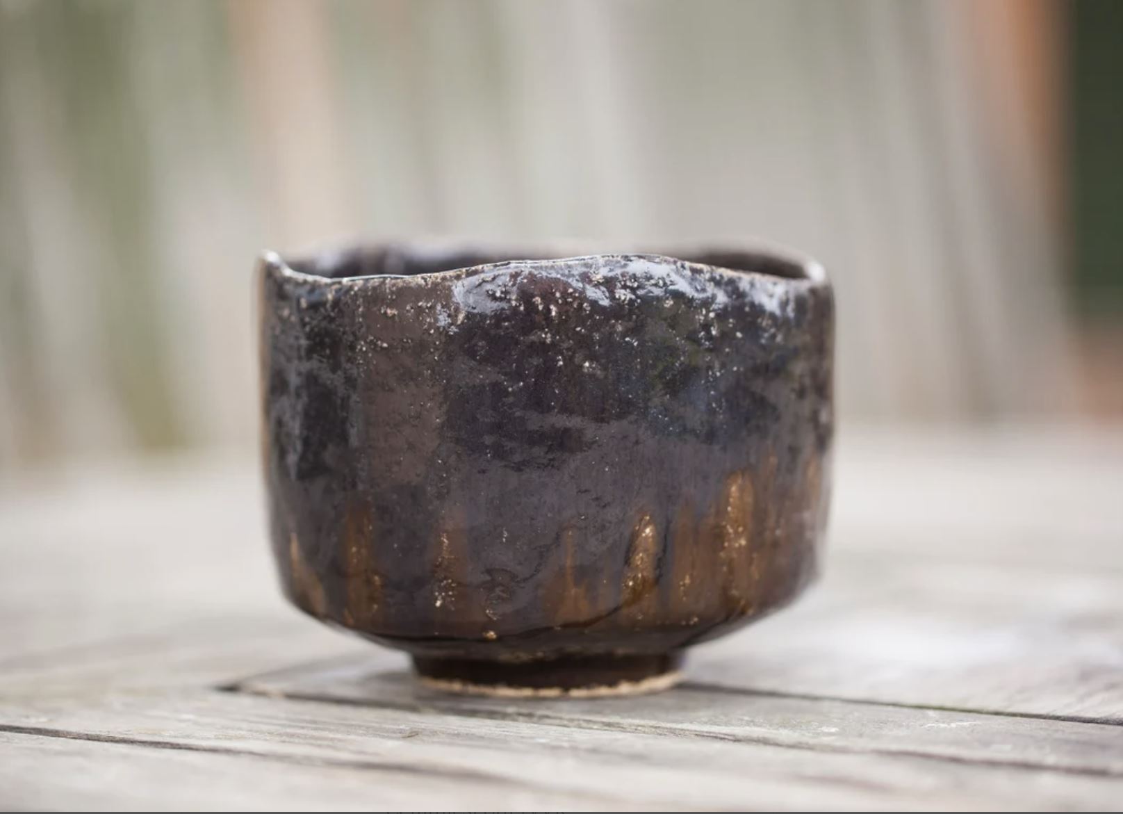 This tea bowl is unique. Its shape was created only by hands (Hand formed). Only hands, clay and iron or wood scraper.
