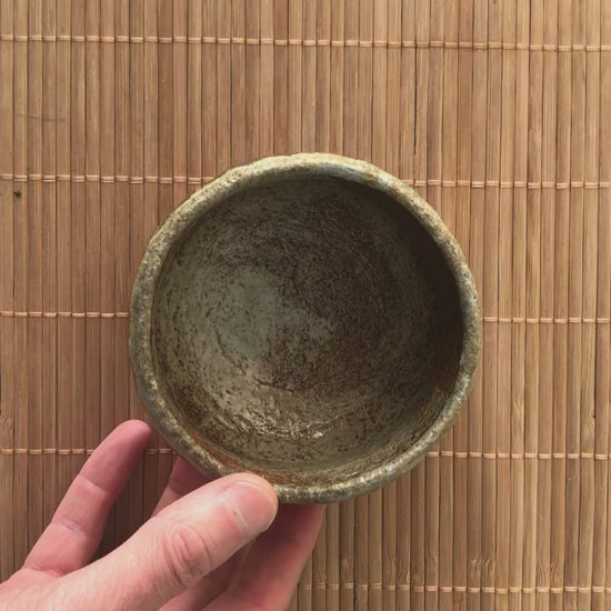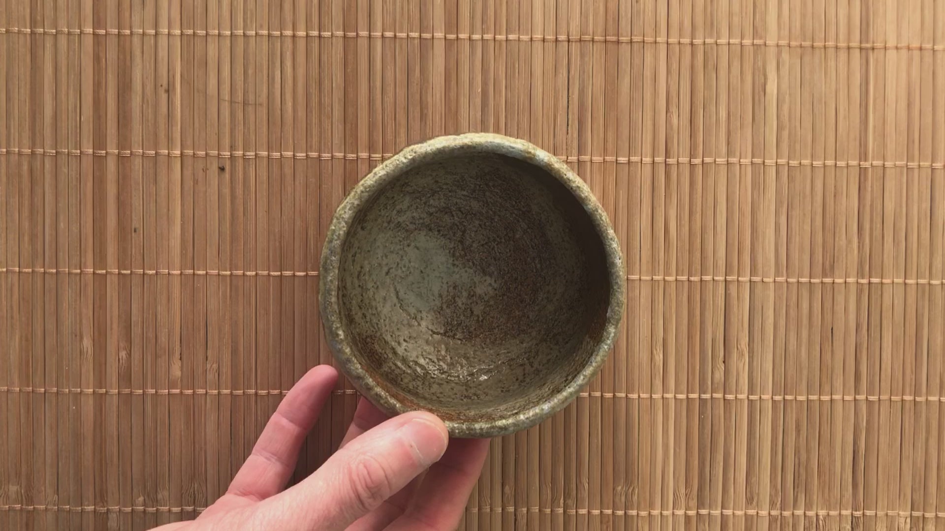 This tea bowl is unique. I made all these tea bowls in my workshop. Its shape was created only by hands (Hand formed). Only hands, clay and iron or wood scraper. You can see fingerprints on the sides of the bowl.