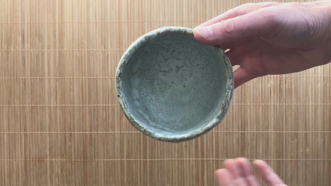 This tea bowl is unique. I made all these tea bowls in my workshop. Its shape was created only by hands (Hand formed). Only hands, clay and iron or wood scraper. You can see fingerprints on the sides of the bowl.