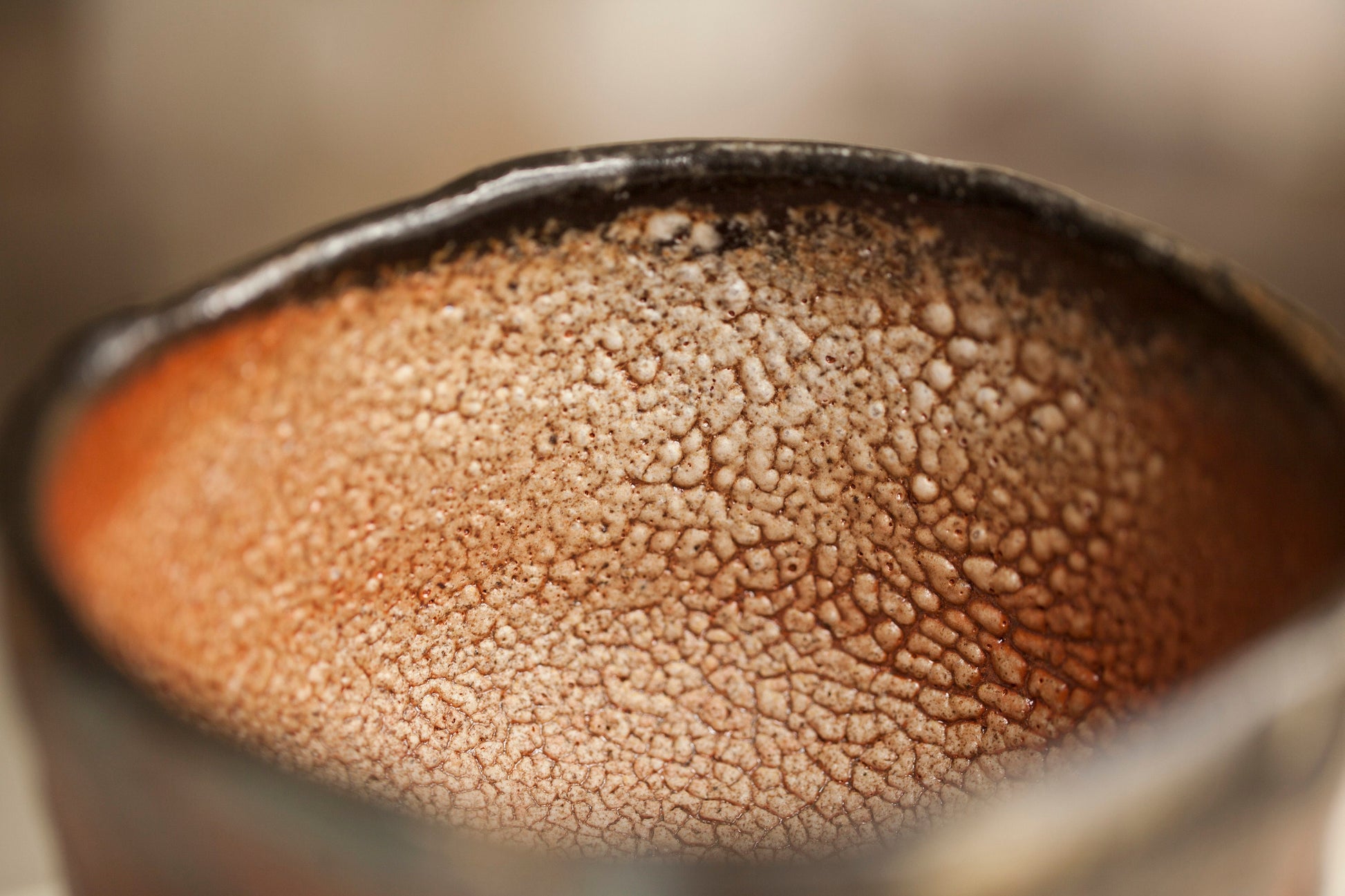 All tea bowls/Chawans inside and its edges are glazed. Outside, there may be small areas, as well as on the foot, which are not covered with glaze. This is done specifically so that you can feel pure clay, not coated ceramics. Non-glazed areas are very dense and hardly absorb water.