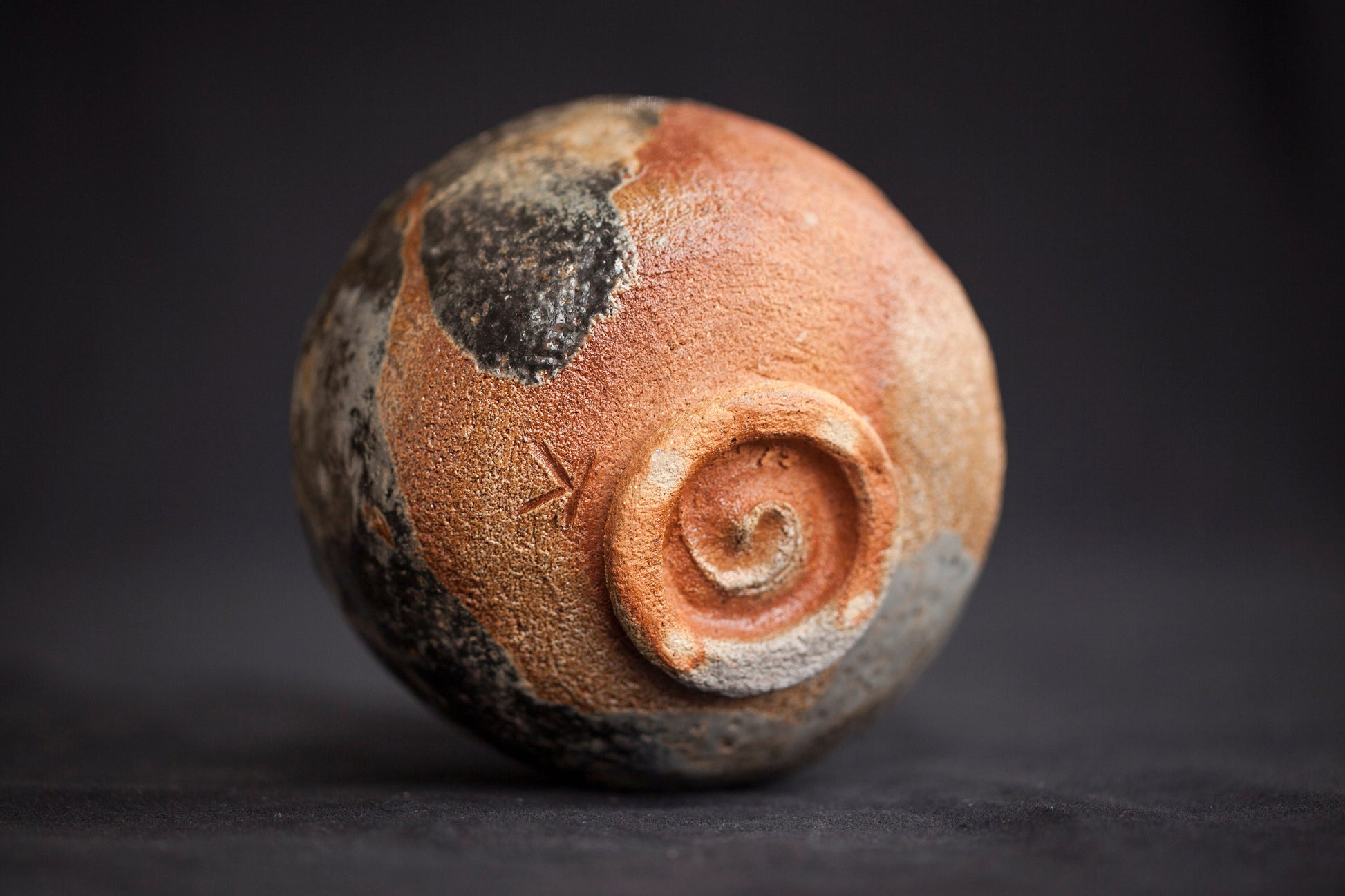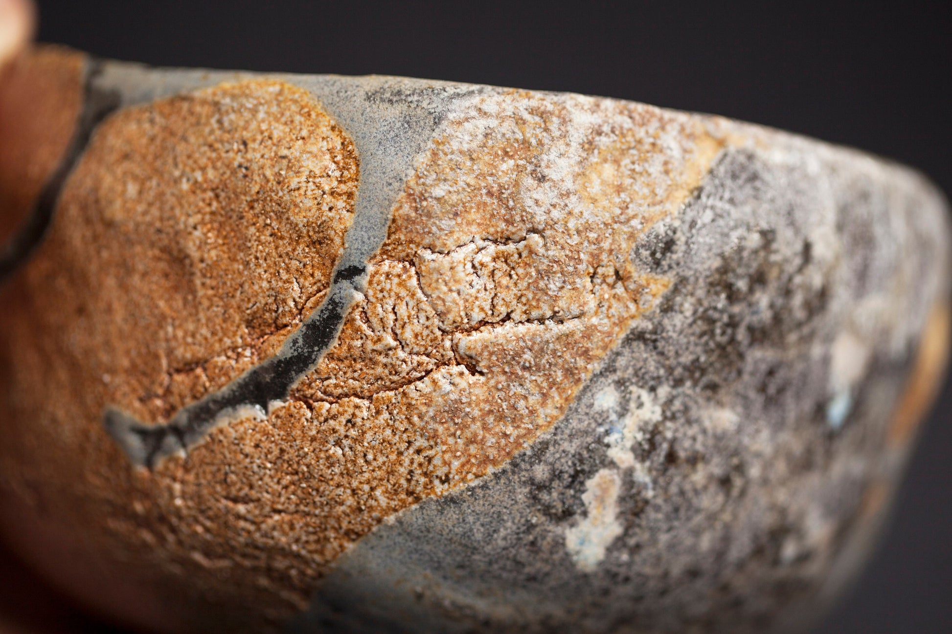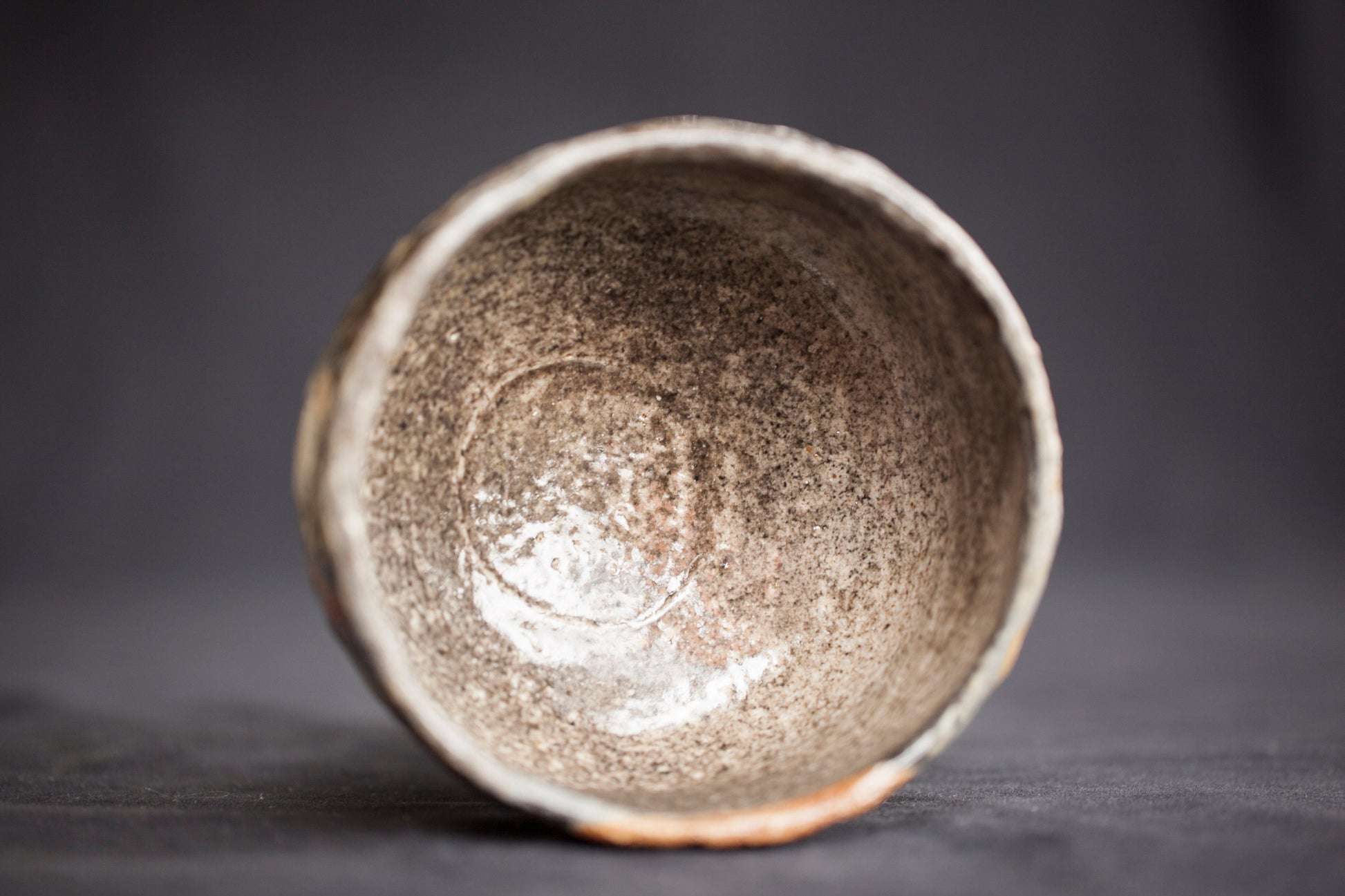 This tea bowl is unique. Its shape was created only by hands (Hand formed). Only hands, clay and iron or wood scraper. You can see fingerprints on the sides of the bowl.