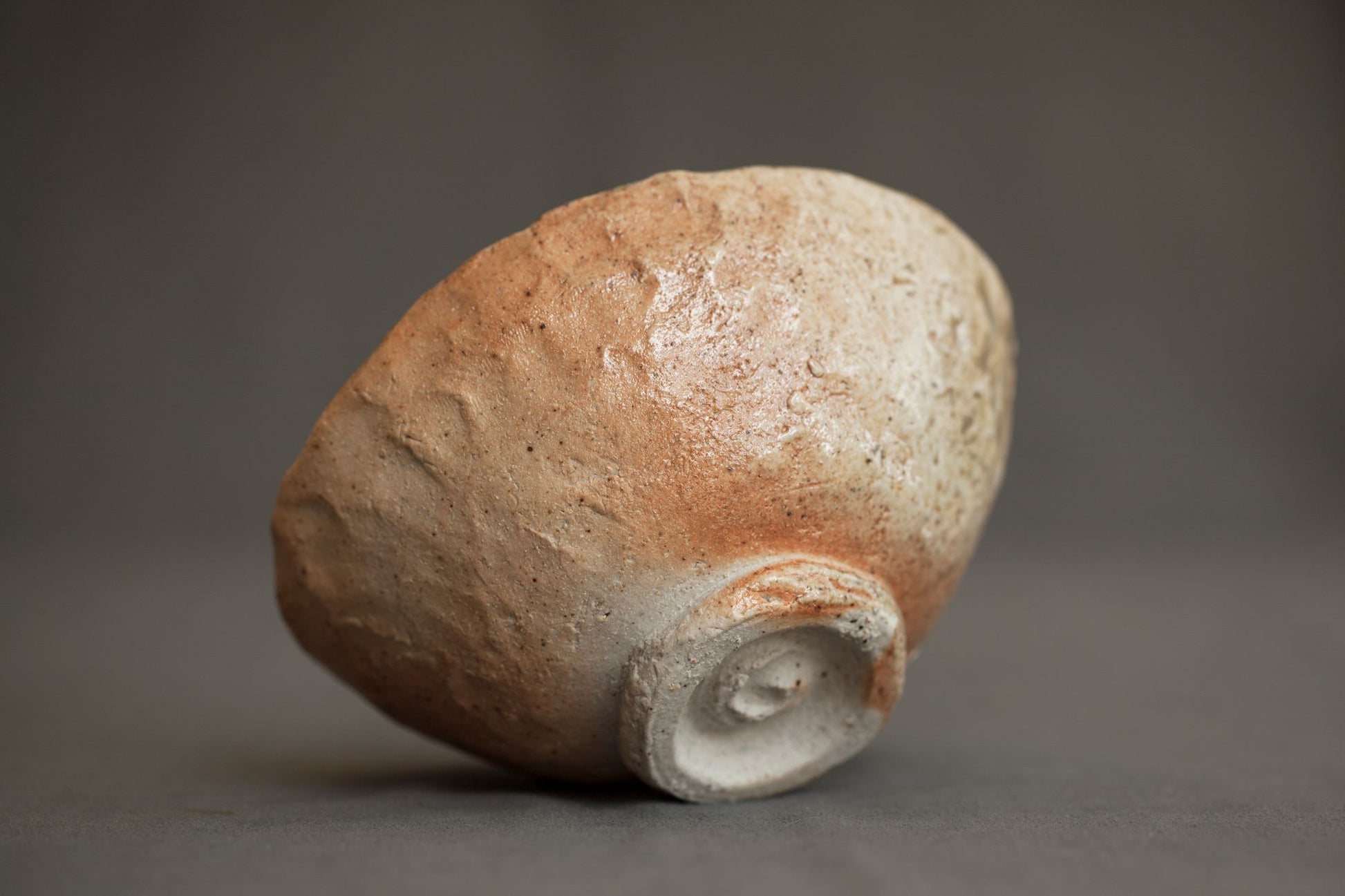 It stood deep in the anagama kiln and received a light coating of wood ash glaze. Therefore, this tea bowl looks very gentle and natural. Natural wood ash: pottery surface is left unglazed and takes on color and markings during the firing from the melted wood ash. It was fired in an anagama kiln for 80 hours. The temperature reached 1350 degrees (wood fired).