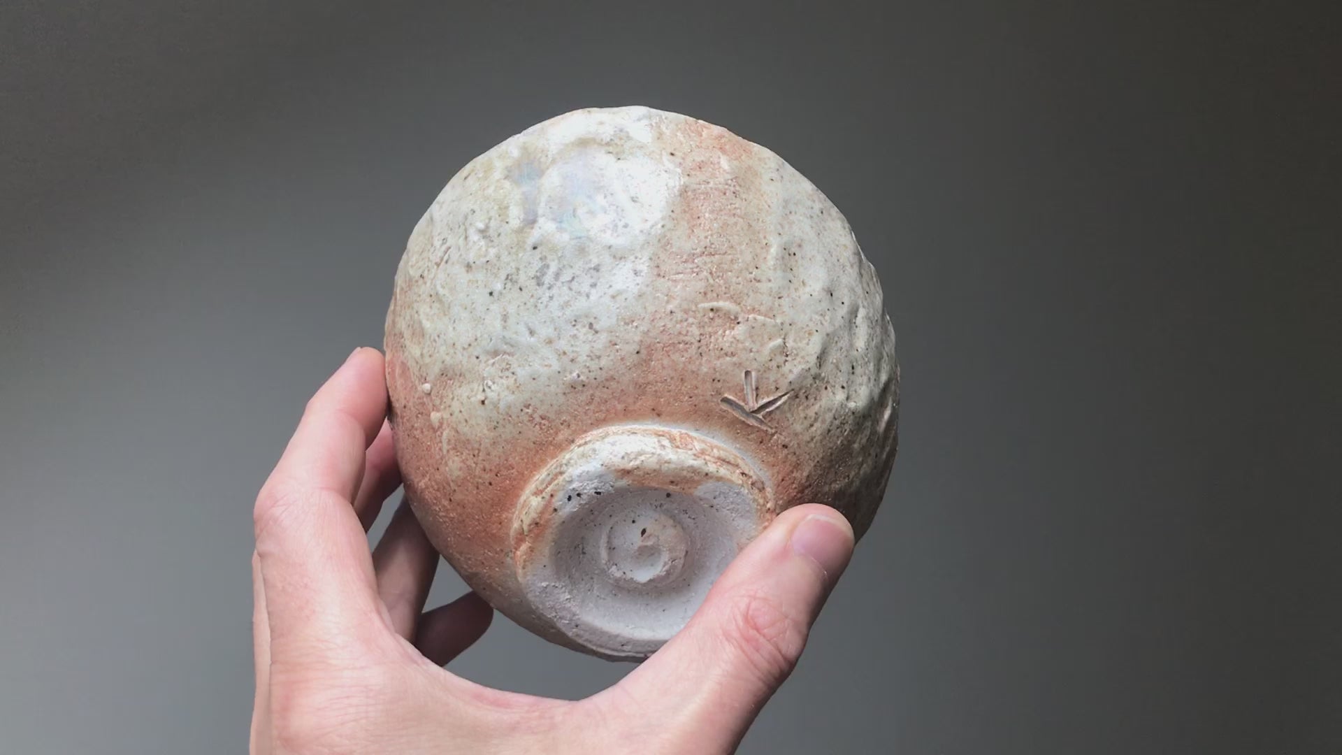 This tea bowl is unique. Its shape was created only by hands (Hand formed). Only hands, clay and iron or wood scraper. You can see fingerprints on the sides of the bowl.