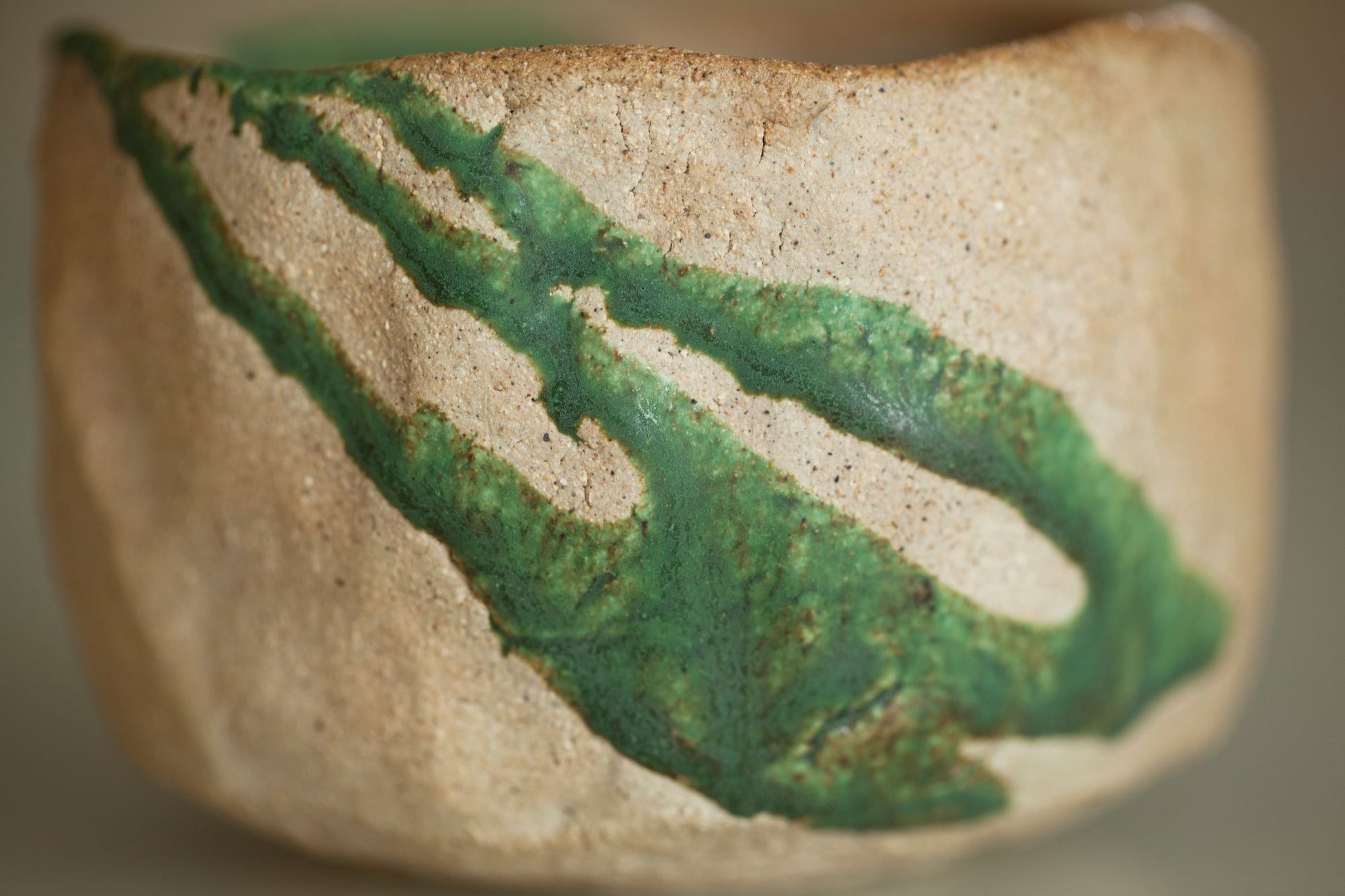 All tea bowls/Chawans inside and its edges are glazed. Outside, there may be small areas, as well as on the foot, which are not covered with glaze. This is done specifically so that you can feel pure clay, not coated ceramics. Non-glazed areas are very dense and hardly absorb water.