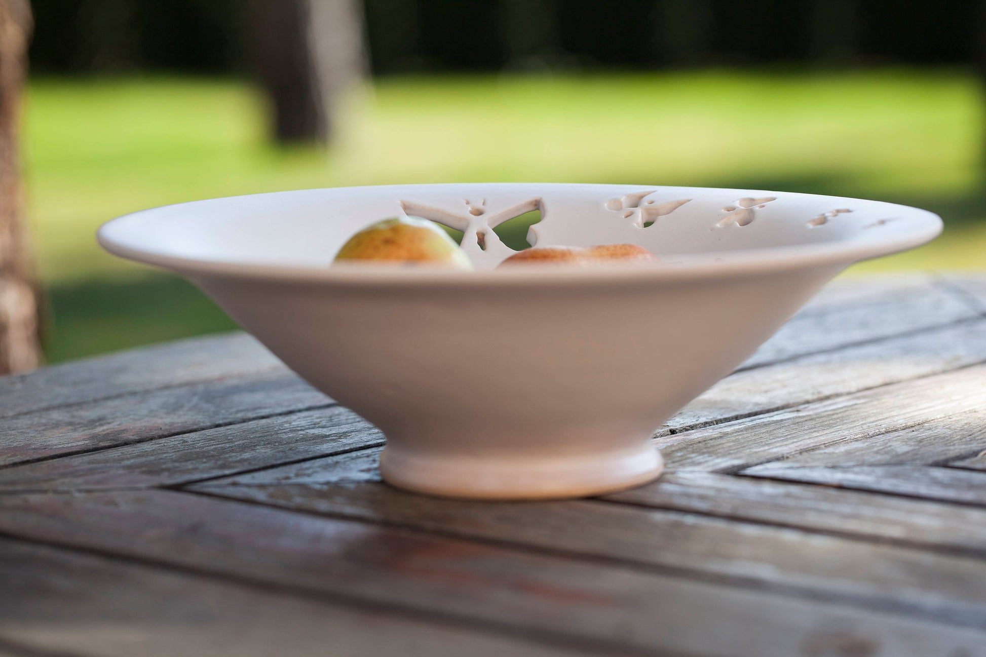 Decorative ceramic bowl with pierced rim, Ceramic fruit bowl, Wedding gift, Ceramic plate butterfly, Salad bowl, Handmade pottery, In stock