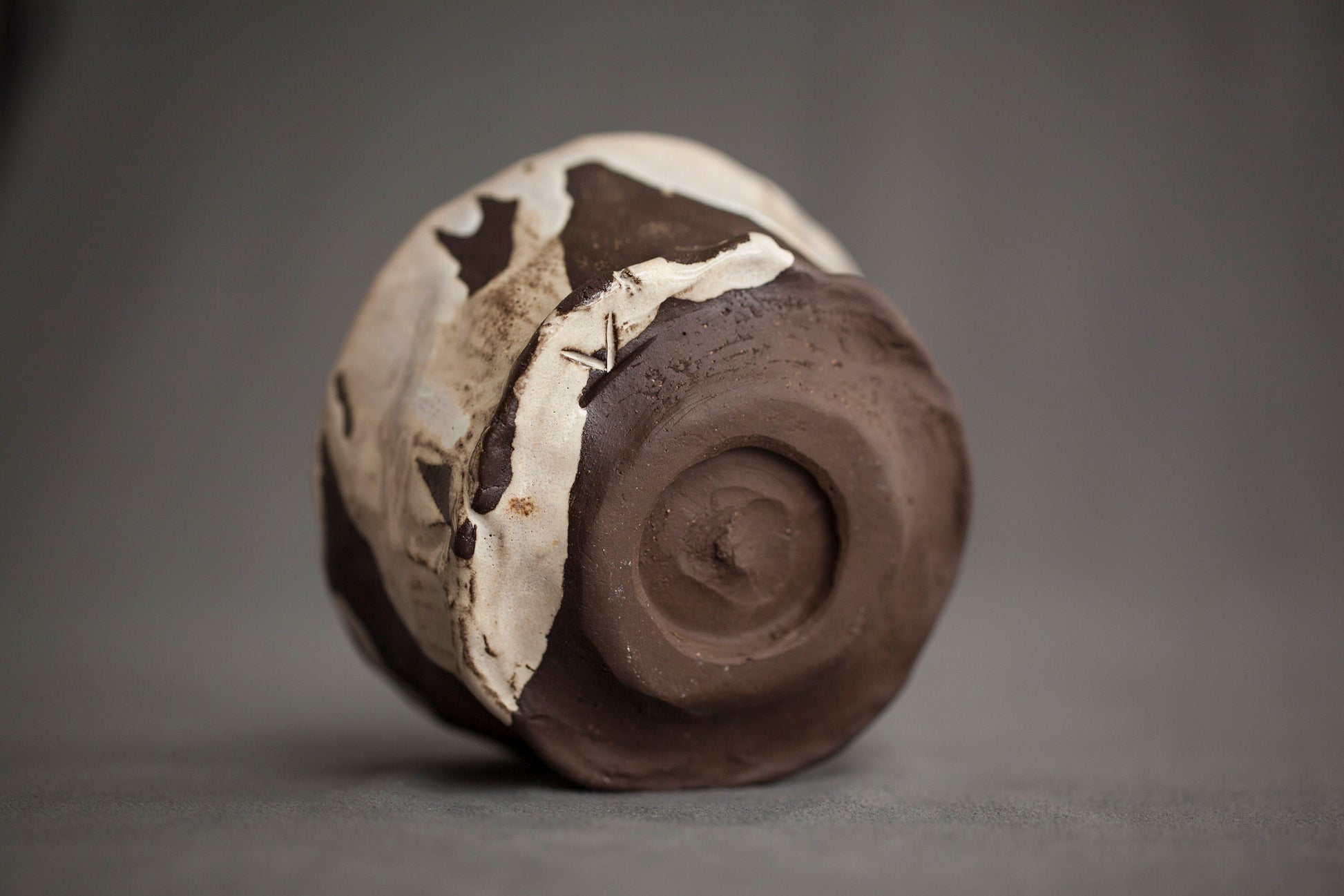 Chawan are molded using the "tezukune" technique, with the palms of the hand: clay is shaped into a dense, flat circle and built up by compressing between the palms. When dry enough, the rough and imperfect clay is trimmed with an iron scraper - "kurinuki" technique . Then it is covered with glaze and fired at high temperature. All glazes and clay used are “food safe”