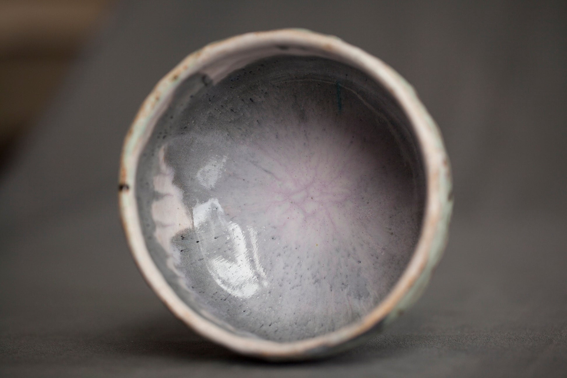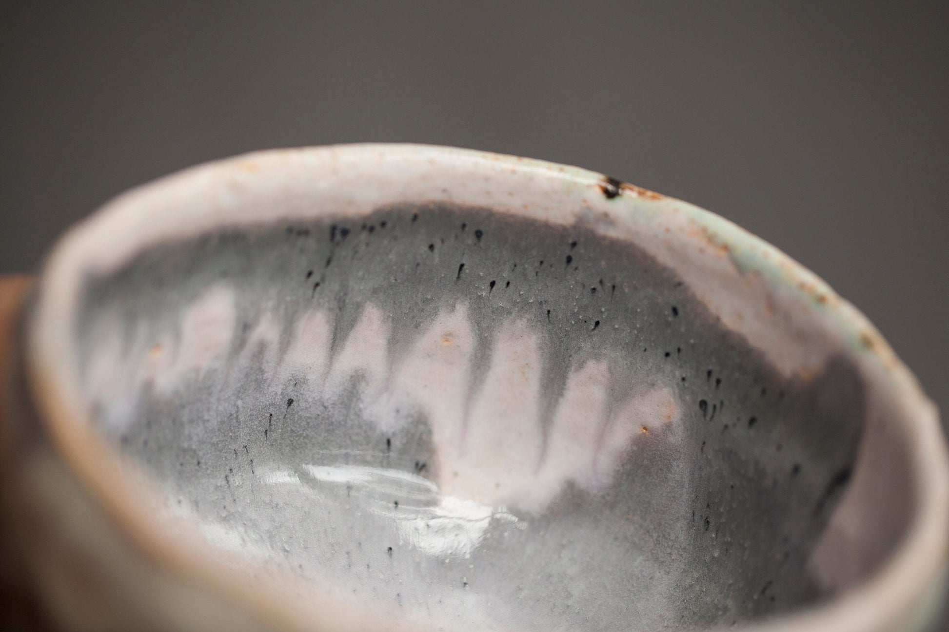 This tea bowl is unique. Its shape was created only by hands. This did NOT use any tools. Only hands and clay. You can see fingerprints on the sides of the bowl.
