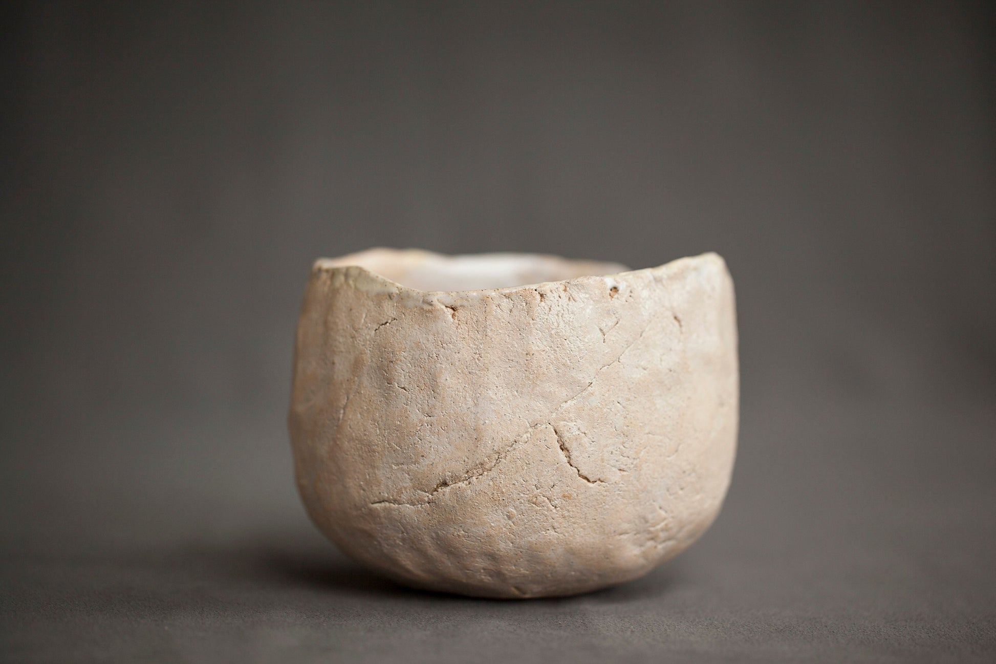 This tea bowl is unique. Its shape was created only by hands (Hand formed). Only hands, clay and iron or wood scraper.
