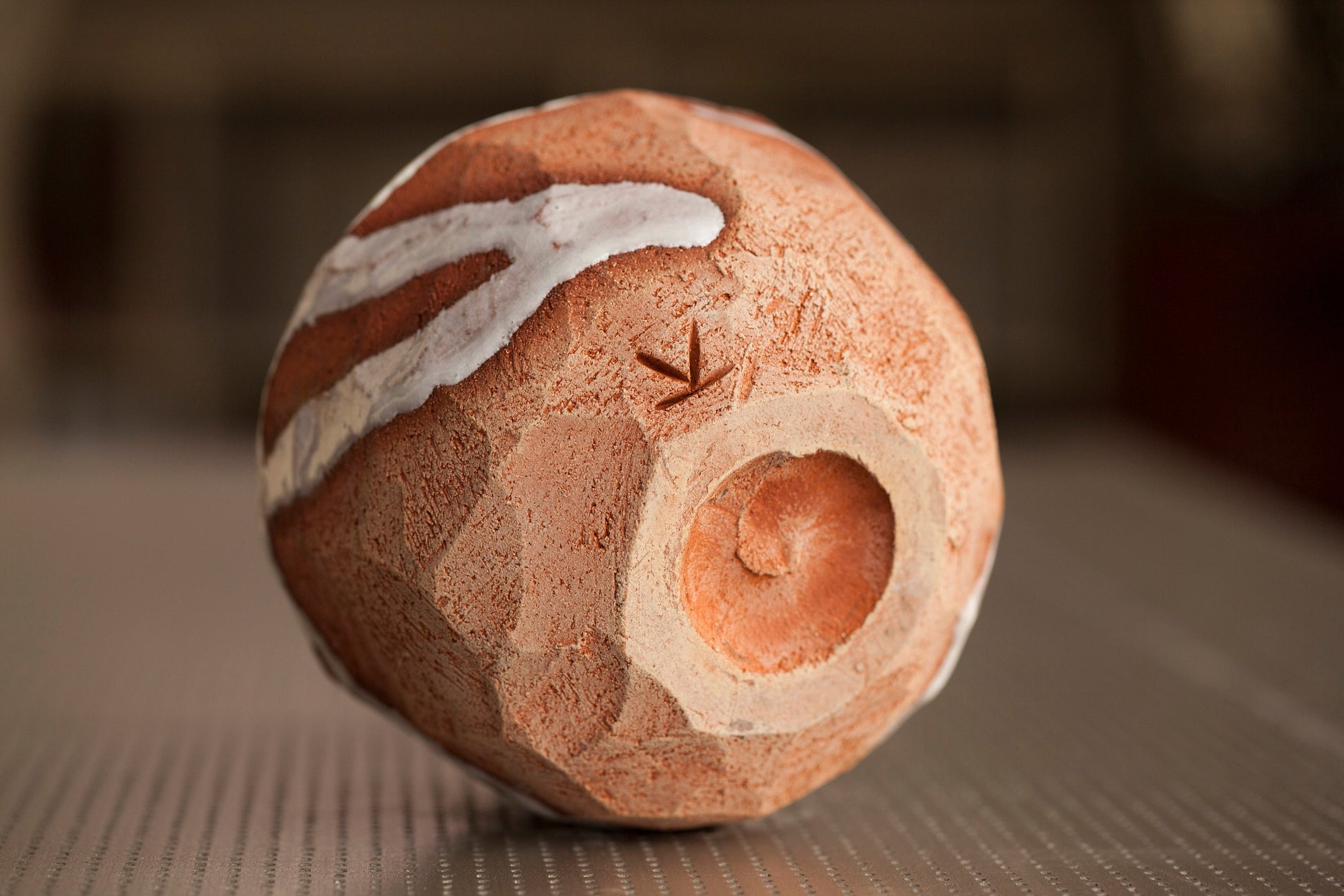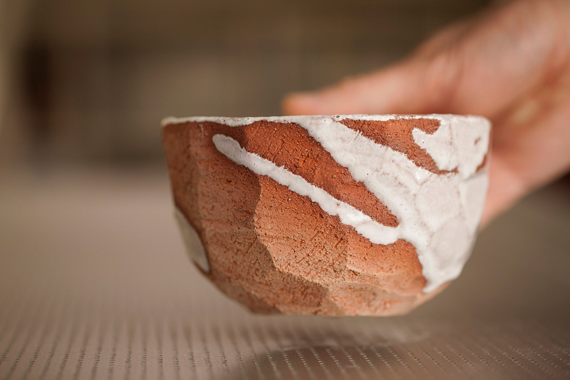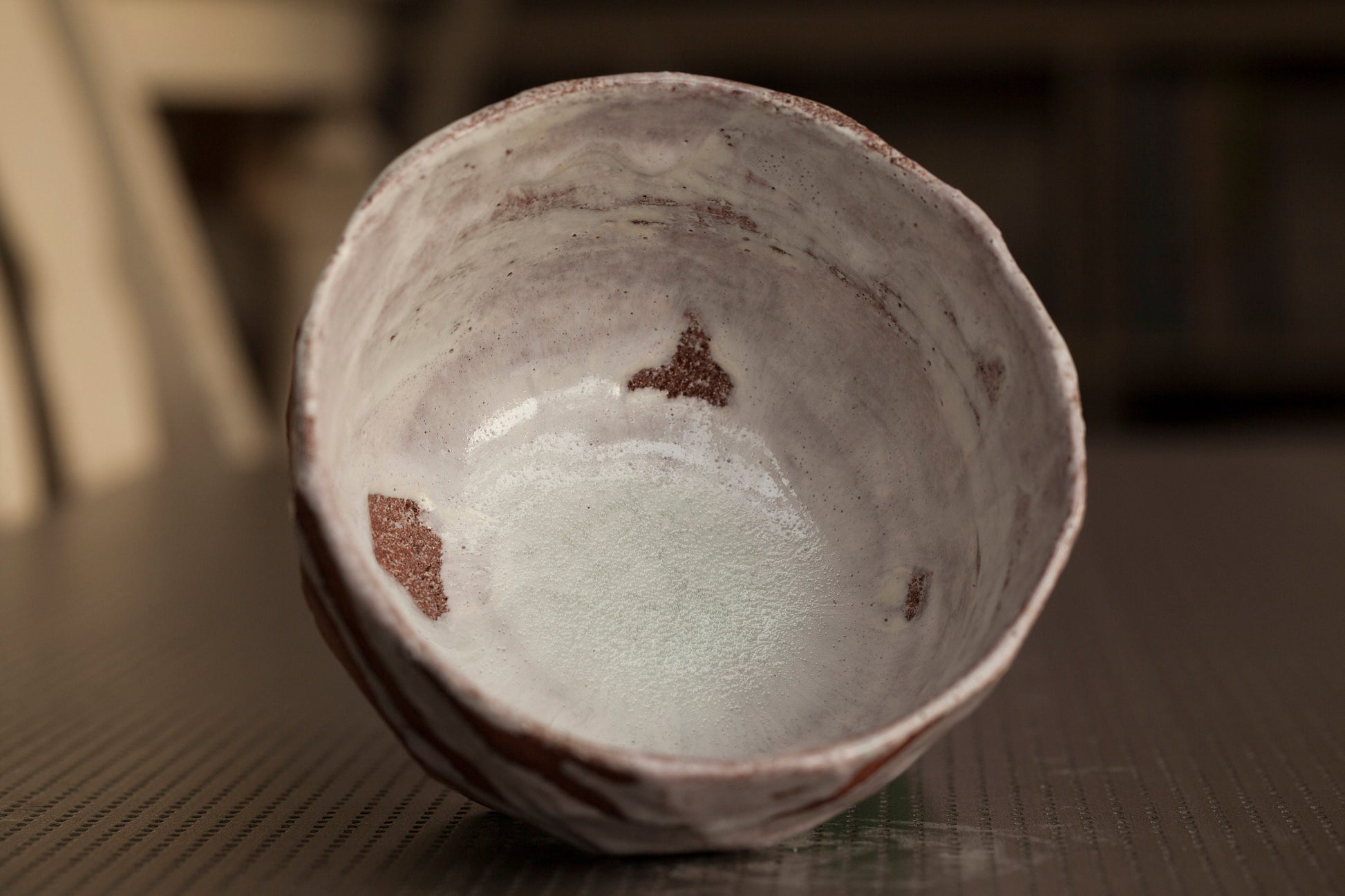 This is a hand formed faceted tea bowl carved out of stoneware clay. When I make a chawan I do not use mechanical or electric potter's wheel. This is an old Japanese technique.