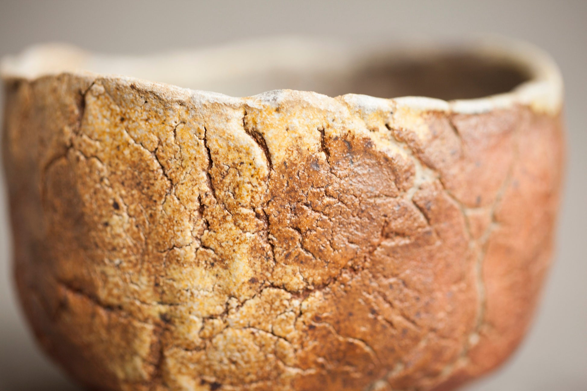 This tea bowl is unique. Its shape was created only by hands (Hand formed). Only hands, clay and iron or wood scraper. You can see fingerprints on the sides of the bowl.