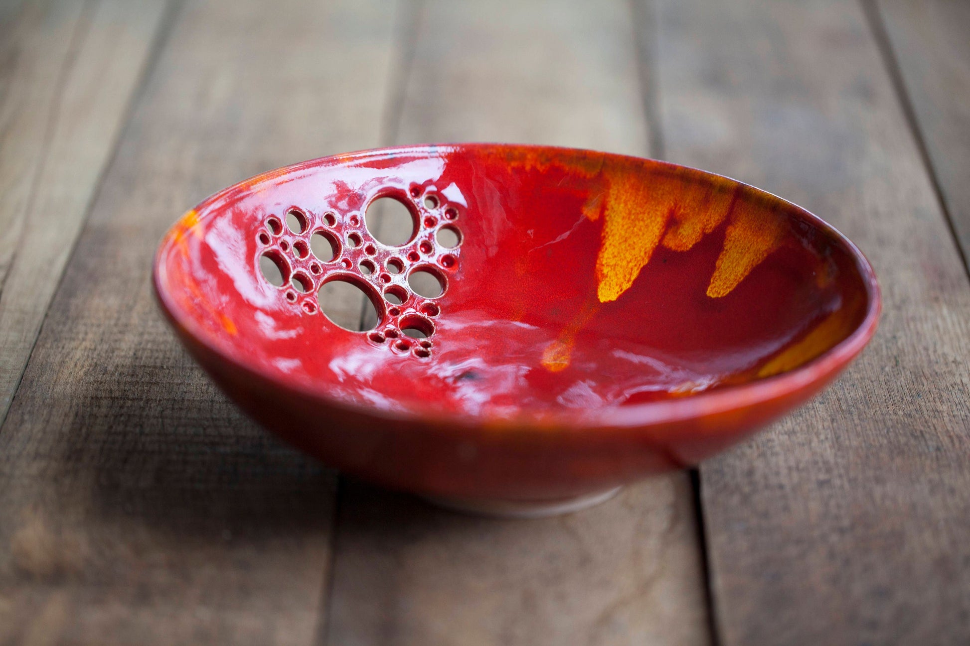 Valentine's Day Ceramic bowl with pierced rim Ceramic fruit bowl Wedding gift Ceramic plate Salad bowl Handmade pottery Heart FREE SHIPPING In Stock
