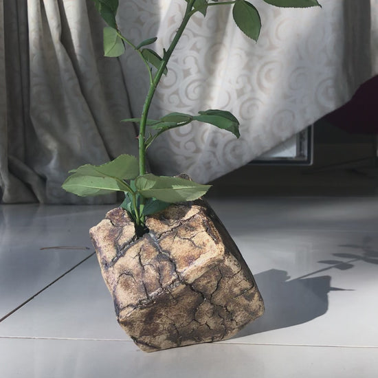 This is a hand formed faceted vase carved out of stoneware clay. When I make a vase I do not use mechanical or electric potter's wheel.
