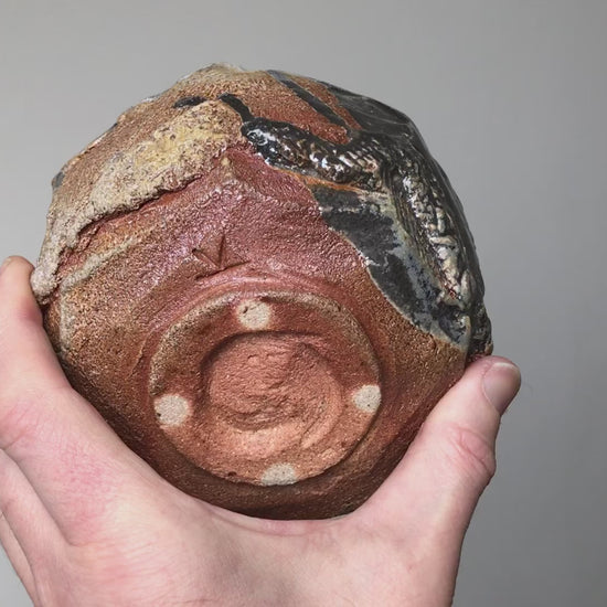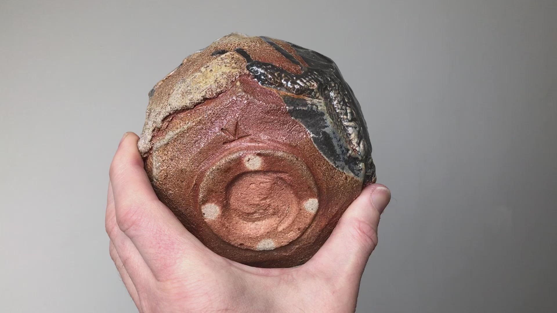 This tea bowl is unique. The form of this chawan is created only by hands (Hand formed). Only hands, clay and iron or wood scraper. I used a wood fired Anagama kiln for 80 hours. The temperature reached 1350 degrees (wood fired). This tea bowl is covered with chino glaze. You can see fingerprints on the sides of the bowl. This chawan was created for communication, and it also does it on a tactile level...